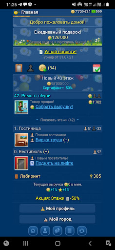 Это позволит вам получать монеты, но для того чтобы заработать баксы необходимо ваше активное участие в жизни небоскреба.