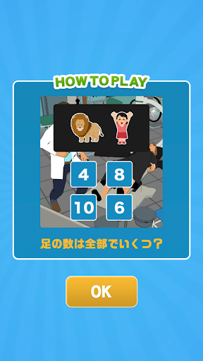 人間と動物たちの足の合計の数を選んでタップするだけ!