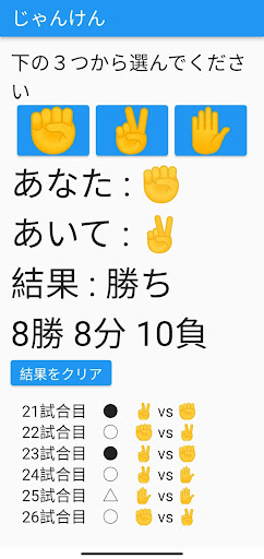 じゃんけんの対決の履歴が表示されます。