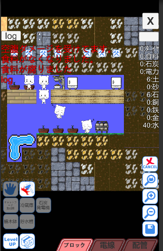 ブロックから素材を集めてクラフトし、食料を確保しながら地上を目指します。