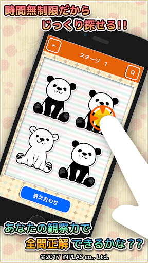 たくさん表示されるどうぶつイラストの中から、一つだけ違うイラストを探しだすゲームです。
