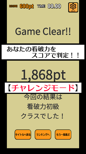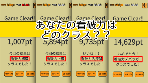 最終スコアで、あなたの看破力を判定します。
