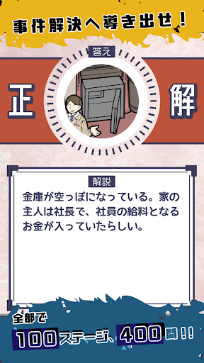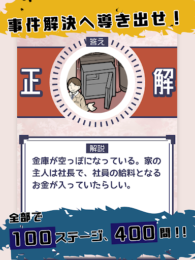 「イラスト探偵」は簡単な操作で探偵気分を味わえる謎解き推理ゲームです。問題は全部で130ステージ、520問あります。