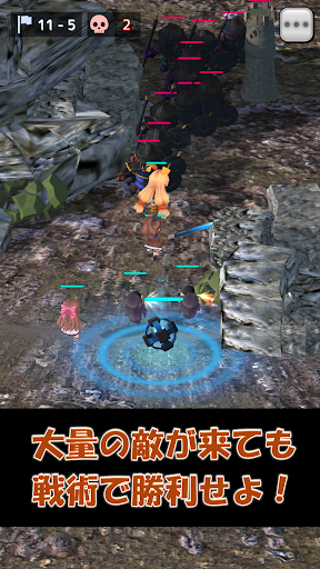 ボタンタップでキャラクターがフィールドにあらわれ自動的に敵をせん滅していきます。攻めてくる敵に合わせて適切なキャラクターを置きましょう。