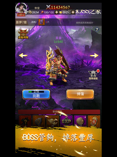 遊戲內有各種各樣的BOSS,輕鬆完虐,即可獲得海量福利與頂
