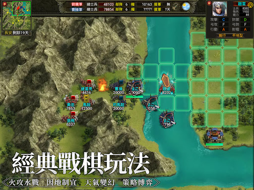 在戰斗場景中山河、湖泊、城關等不同地形上有變化多端的戰術組合,