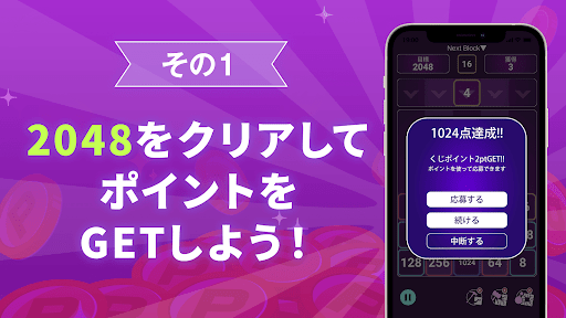 2048と懸賞の要素を兼ね備えた、夢のようなアプリになります。