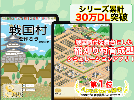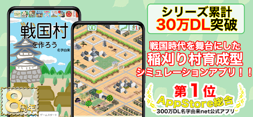名字(苗字)に興味のある方もない方も、自分の名字を冠した村を成長させ、天下統一を果たすことができるゲームです。ランキングでは日本中で最も強い村と村の発展を競うことができます。家族が少人数化していく現代だからこそ、稲を刈り自分の家族を増やし、村が大きくなる醍醐味を体験しましょう。大ヒットゲーム「弥生村を作ろう」に続く第二弾、群雄割拠の戦国時代を舞台にした「稲刈り村育成型シミュレーションアプリ」です。