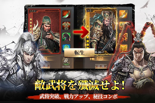 名将たちはユニックスキルを持つだけではなく、お互いコンボスキルもある。この強力的な技で、あなたの天下統一の邪魔を一掃できる。自分の最強の名将陣容を結成して、神州統一の道へ!