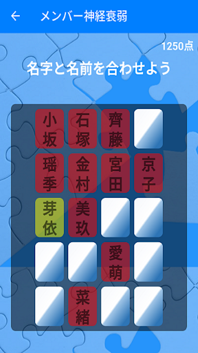 20枚のカードにメンバー名が書かれていますので、「久美」と書かれたカードを見つけて素早くタップしてください。