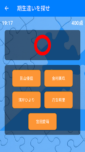 表示される5人のメンバーのうち、期が違うメンバーが一人いますので探して素早くタップしてください。