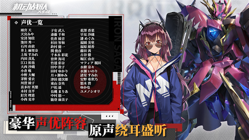 超级机器人&美少女作品《机动战队大作战》,特邀请日本知名音乐人【泽野弘之】担当OP、ED、BGM配乐,著名动画导演、机械设计师【大张正己】担当机设与PV动画监督。超500种机甲&角色,十万种战斗策略组合,美少女×机甲搭配,只为带给你全新的机器人战斗体验!