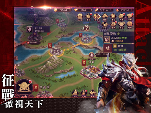 「國戰!賞你個震撼」超過150座歷史名城,完美的還原了群雄併起的三國時代,這浩大的規模下,攻城掠地,為的是稱王爭霸;在僵持的戰役中,勢均力敵,拚的是背水一戰!大型國戰,不是一個人在奮戰!這場仗,絕不退讓!