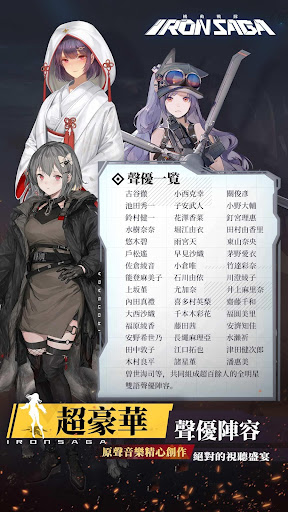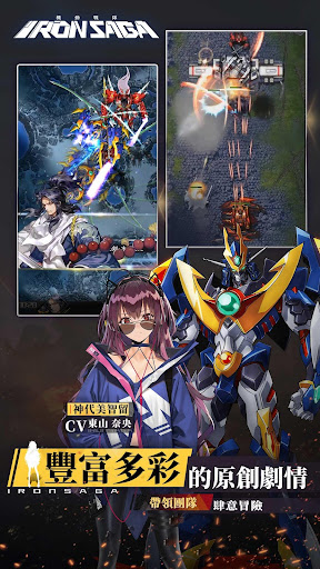 超級機器人大戰作品《機動戰隊 Iron Saga》特邀請日本知名音樂人【澤野弘之】擔當OP、ED、BGM配樂,著名動畫導演、機械設計師【大張正己】擔當機設與PV動畫監督。彙集中日韓著名畫師與知名聲優,超500種機甲&角色,超過十萬種戰鬥策略組合,百變遊戲模式,流暢的戰鬥體驗和炫麗的技能特效,美少女X機甲搭配,只為帶給你最獨有的機戰滿足感!