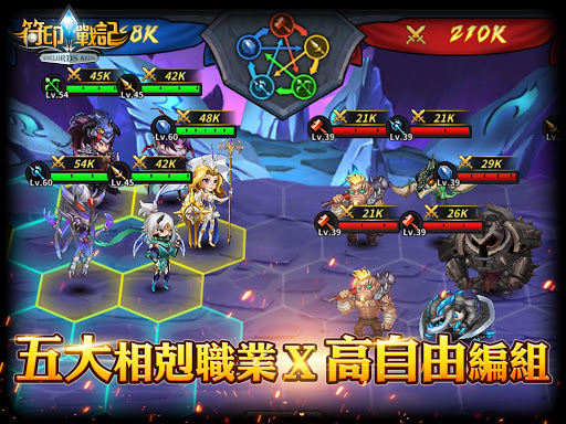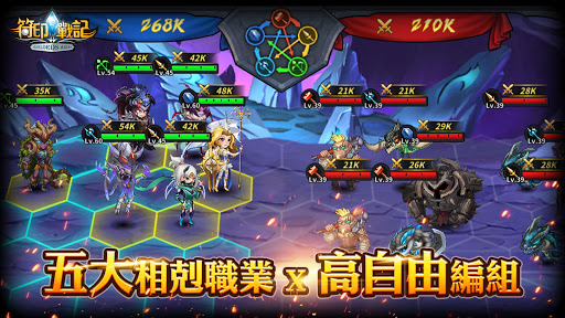 遊戲分為坦克、戰士、法師、刺客、射手五種職業,「超過50位英雄」供玩家招募。於戰役中,玩家可自由編輯隊伍陣容,精準利用職業剋制特性,巧妙的編排出場英雄及陣行,靈活操作避開險惡的地圖陷阱,擊敗強敵取得勝利!