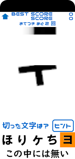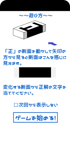 連続して表示されるひらがな、カタカナの断面を見て正解の文字を当てましょう。