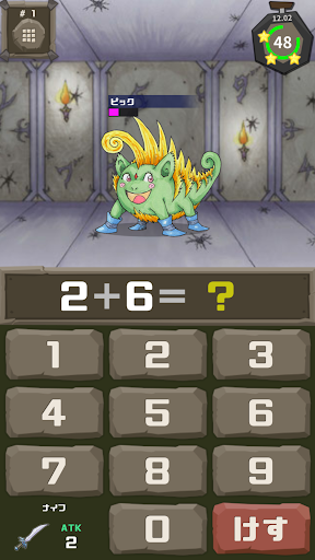 足し算だけ出題するモンスターや、掛け算だけ出題するモンスターなど、モンスター毎に計算式の種類は決まっています。