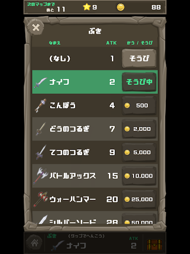 コインを集め 武器を買って強くなれ