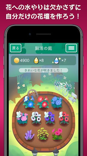 『脳活の庭』では、トレーニングで得られるコインを使い、庭で花を育てる事ができます。