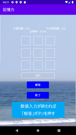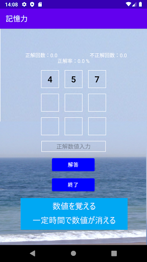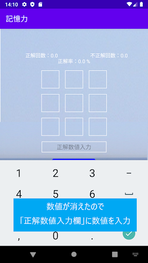 自分がどれだけ数値を短時間で記憶できるか、記憶力を高めるゲームです。