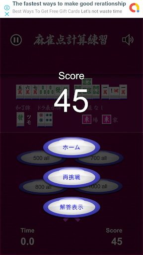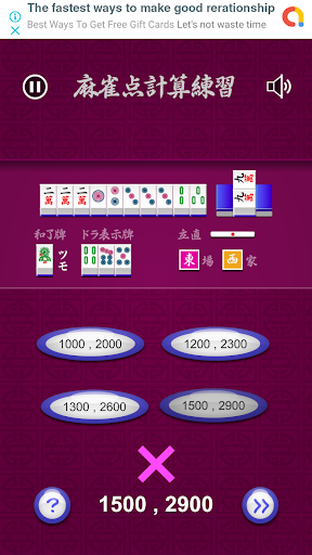 ●麻雀のアガリ形を見て、いかに早く得点計算できるかを競うゲームです。