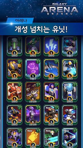 갤럭시 아레나의 SF유닛, 특수 기술, 방어 시설을 갖춘 다양한 카드를 수집하고 업그레이드 하십시오.