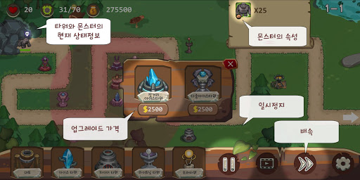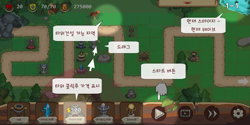 소환되는 여러 종류의 골렘 몬스터들을 다양한 종류의 타워를 건설하여 물리치십시오.