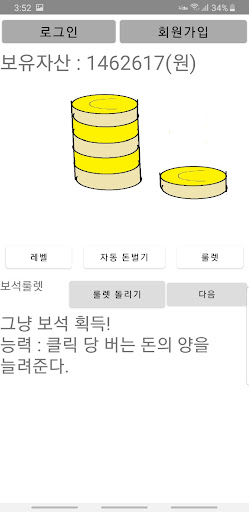 자동 돈 벌기 – 자동 돈 벌기 레벨을 올리면 자동으로 벌어지는 돈의 양을 늘릴 수 있습니다.