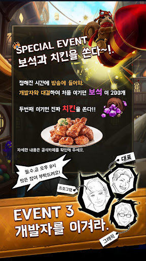 – 한판을 이기면 소정의 보석을, 두판을 이기면 진짜 치킨을 쏩니다.