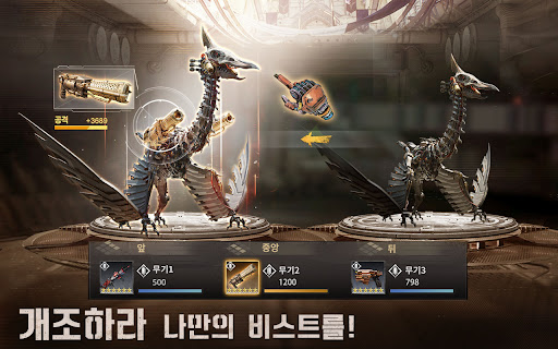 내 손으로 직접 만든 10여종의 사냥 무기로 메카 비스트를 사냥하고, 포획하고, 길들이고, 개조해서 전투력을 끌어올리세요!