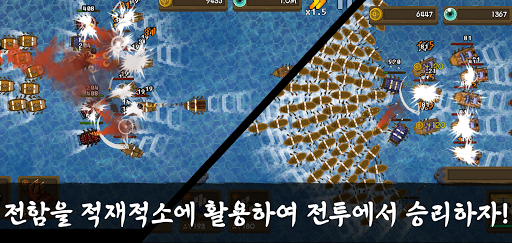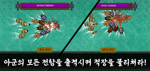 넓은 바다에서 적 대장선을 격침시켜 섬에 다시 조선의 깃발을 꽂아주세요!