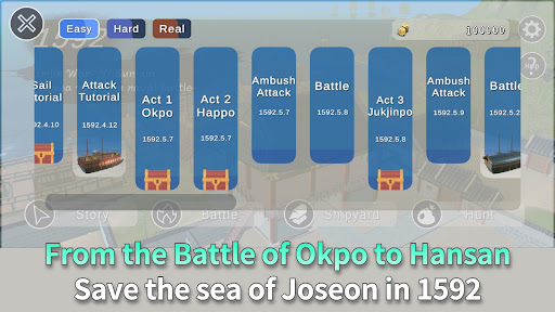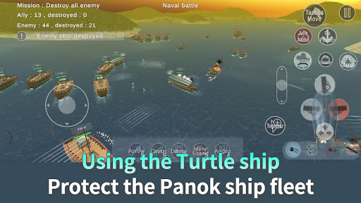Use Panok ship and Turtle ship to advance strategically, and defeat the enemy.