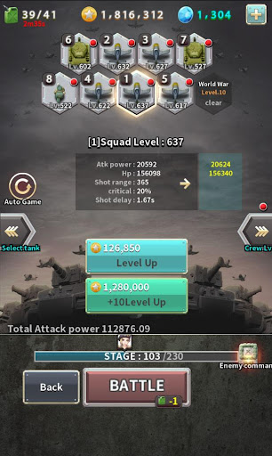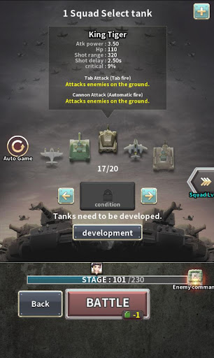 Collect more than 20 types of equipment including tanks, anti-tank guns, and fighter jets through technology development!