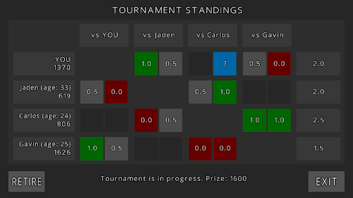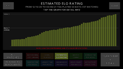– Tournament mode with untimed matches against simulated opponents that are calibrated to your skills, are always available, move immediately and never cheat!