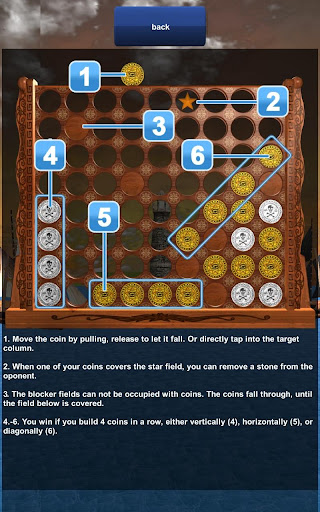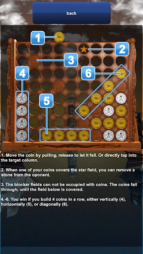 3) You can play with a star field in one of the upper rows. When a player reaches the star, he can remove a coin of the opponent. This gives the gameplay even more action.