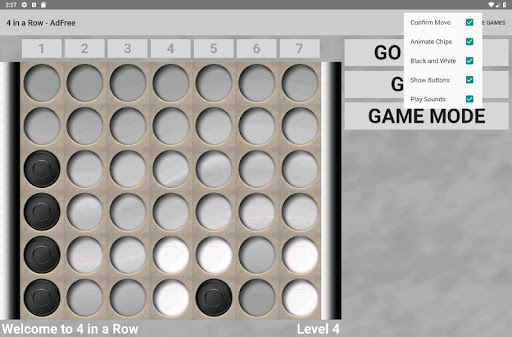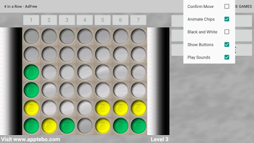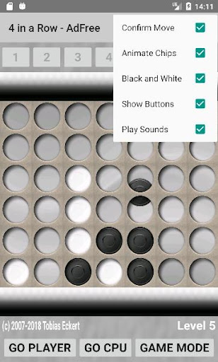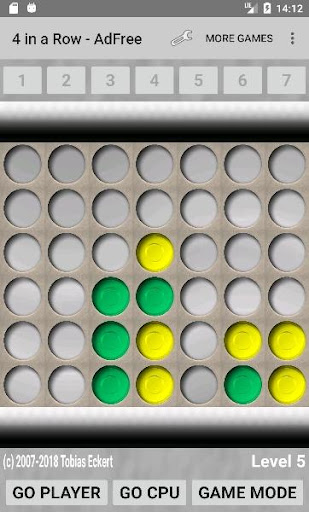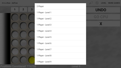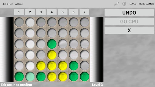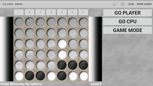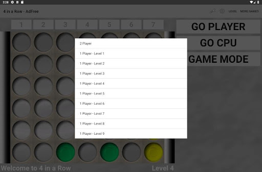 Play 4 in a Row against a friend or the challenging CPU player.
