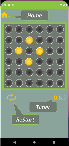 You have to turn off all the turned on lights by pressing the lights according to the game rule that in case you press any of the light the status of the surrounded light will change as well, the turned light can be turned off, the turned off light can be turned on and the pressed on light can’t be altered