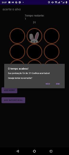 Você terá que acertar a maior quantidade de coelhos em uma rodada com tempo limitado a 30 segundos.