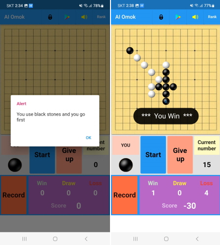 AI Omok promotes brain activation by allowing gamers to play Omok games with artificial intelligence computers and manage their scores.