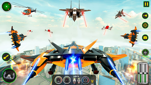 You might have played many future robot games with super robot transformation but this jet robot simulator has various tasks of enemy destruction and terrifying missions of counter attack unlike any other transforming jet games. Are you ready fight the super robots in the futuristic battle of airline police? Become a plane to transform with agility in order to kill the rivals in this latest addition to space robot transforming games. Let the quest begin as the fly bot fighting in 1 of the very best robot games available on store, you are required to control a machine build for war, to battle in the air & to protect the land from the evil. Merging the complex tactics involved in transform robot games with pleasures of air robot games & fly robot games, this flying robot simulator lets to take charge of air police force. Glide over huge skyscrapers with your metal wings to shoot enemy on the ground & to win the sky from the transforming jets. Rise as a hero, surge a savior, & earn victory over the machines. If this excites you & you want to control fighter jets & helicopters and transform robots, then be a fly bot at this air robots simulator. Highly Detailed environment, with smooth controls of police robots & realistic physics in is far superior than other airplane robot games. There are some fantastic levels where you will be tested against hostile combat with the extreme terror.