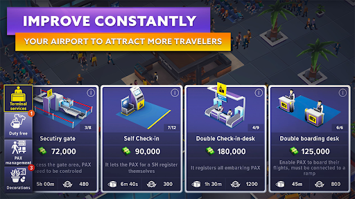 🏗 Shape your dream airport: the airport is a city itself: as an airport tycoon, you will need to build it from scratch, grow it, and ensure your airport’s infrastructure is ready to receive your planes.