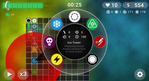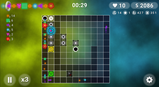Fun tower defense game with support for mazing and a variety of maps. Choose your selection of towers from a set of 7 base types and upgrade them as the waves of enemies increase in difficulty. Stop the attacking creeps from reaching the goal on each map and move on to even more challenging levels.