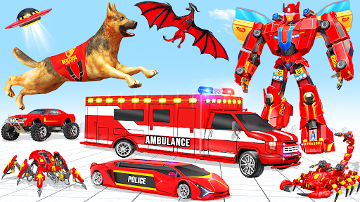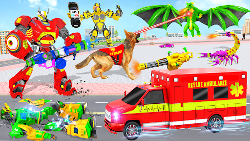 Ambulance Dog Robot Car Game is the ultimate robot warfare game. Fight & Battle in our shooter robot game against the mech robots. Fight the final fight with transform robot hero from the war robots transform universe. Put your mission combat skills, arena war tactics & robot transformations to test against the super mecha robots.