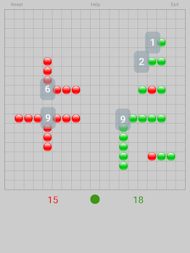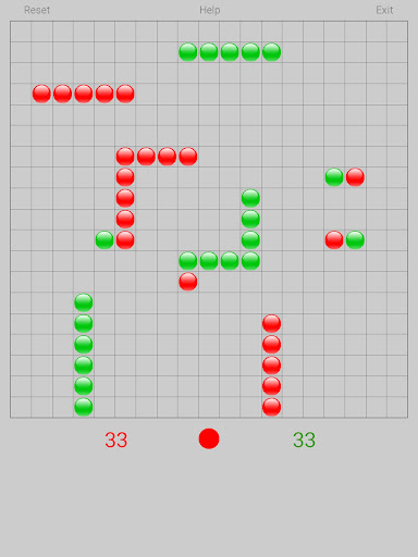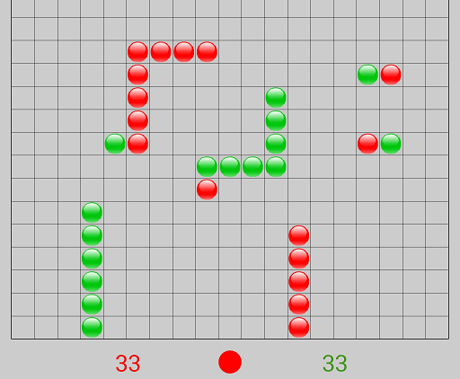 Placing a ball in a square that has adjoining balls (of the same color) vertical and/or horizontal, you get as many points as balls