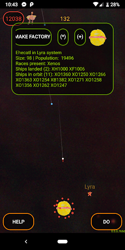 Andromeda Rising is a turn-based sci-fi strategy game. As the leader of the Xenos you manage your planet, build ships, eXplore your star sytem, eXpand to nearby systems, eXploit any resources you find, and eXterminate anyone in your way (4X). The game is loosely based on Galactic Bloodshed, a text-based multi user game in the 90ies.