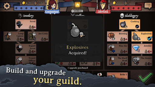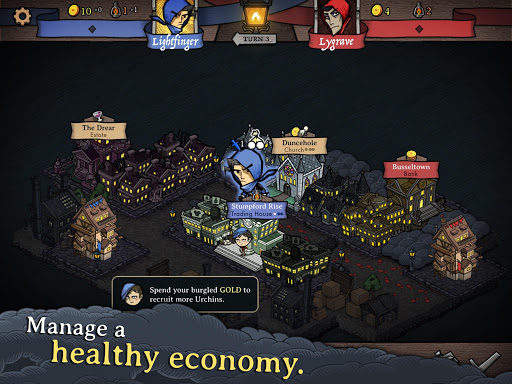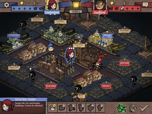 SNEAKERY, STABBERY & SKULLDUGGERY! Upgrade your guild, recruit street urchins, hire thugs, start a gang… and bribe, blackmail and assassinate the opposition. There are many paths to the top.