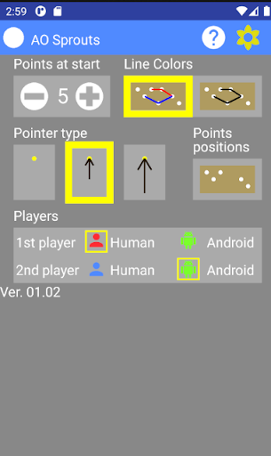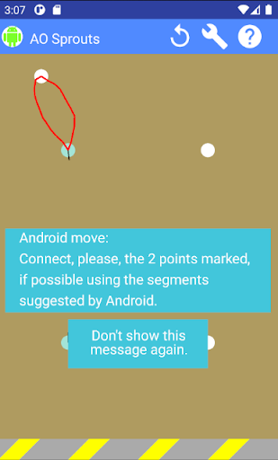 In this version of the game, Android can not draw the lines. At android’s turn, it scores 2 points with the colors green and yellow (or a single point with the 2 colors).