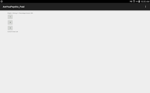 This game has three buttons with numbers chosen based on chance, you pick what you think is the chosen button, and the game tells you if you are right or wrong. It will keep your score till exited and will reset once re-opened. Enjoy!