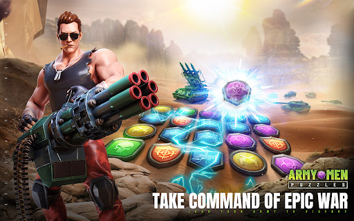 Attention: Army Men & Puzzles is a free-to-play army men themed match-3 strategy game, while some items and functions are available through in-game purchases.