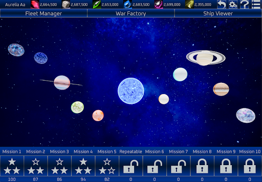 Utilize the Fleet Manager to customize your fleet with hundreds of formation combinations. War Factory to purchase new ships and sell no longer used ships. Ship Viewer to upgrade your ships with over ship specific upgrades.